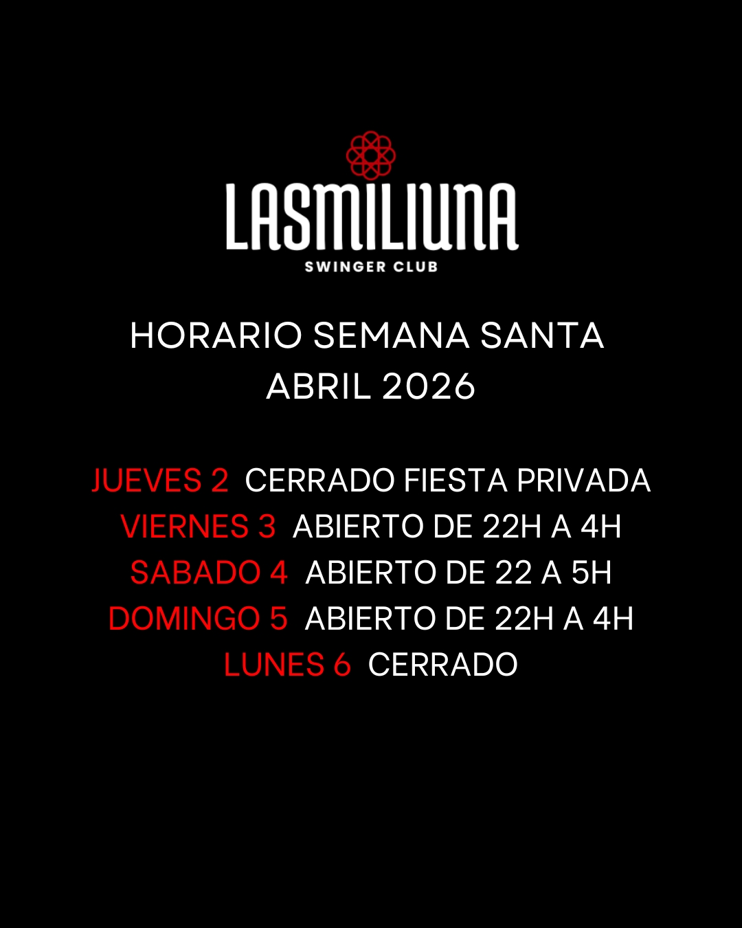 VIERNES 3 ABRIL —- ABIERTO 22H A 4H